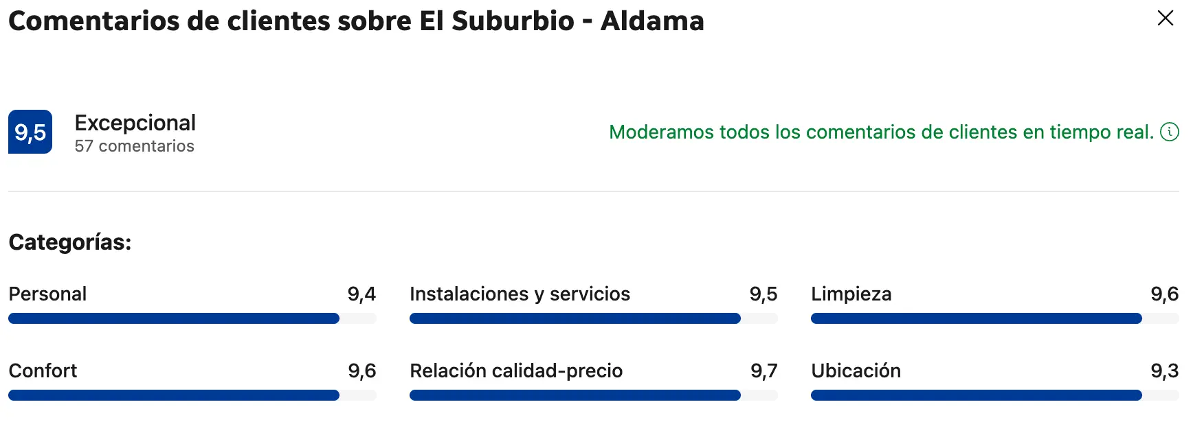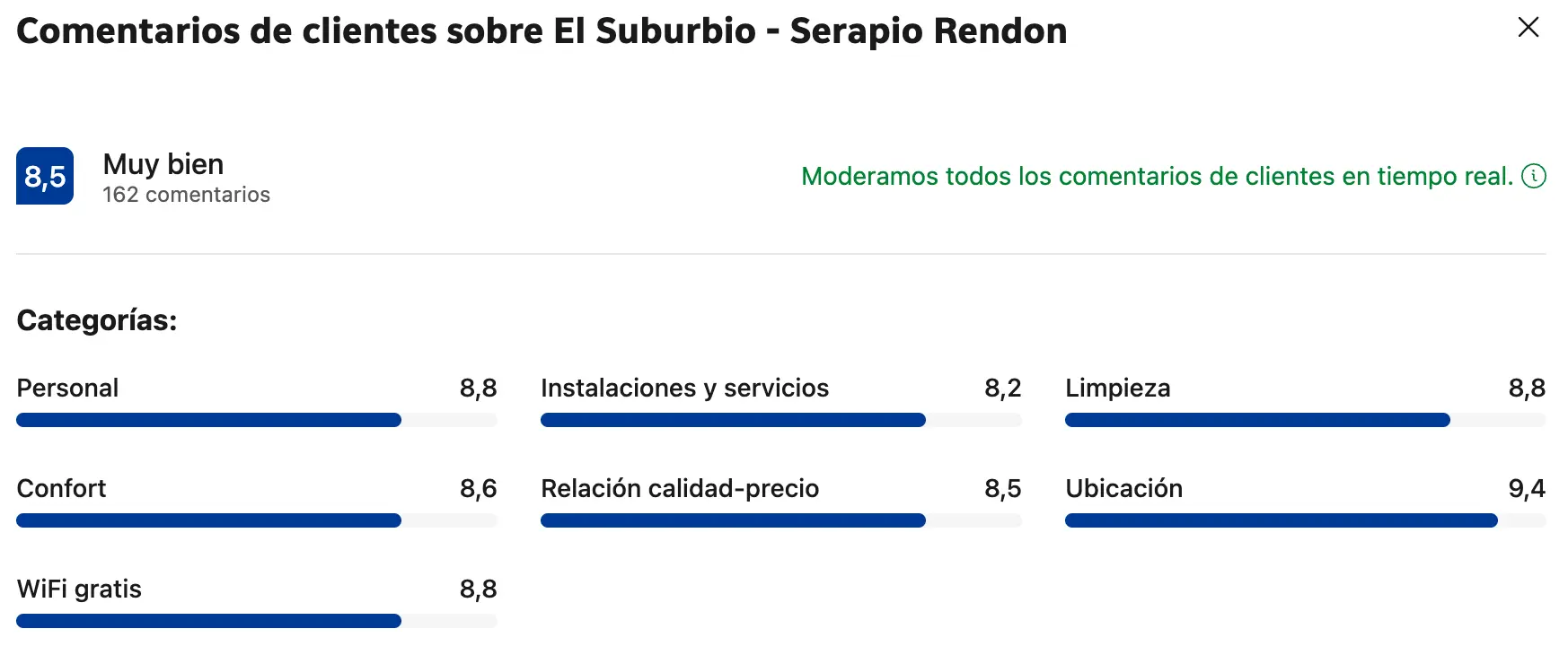 Comentarios de nuestros espacios en Booking